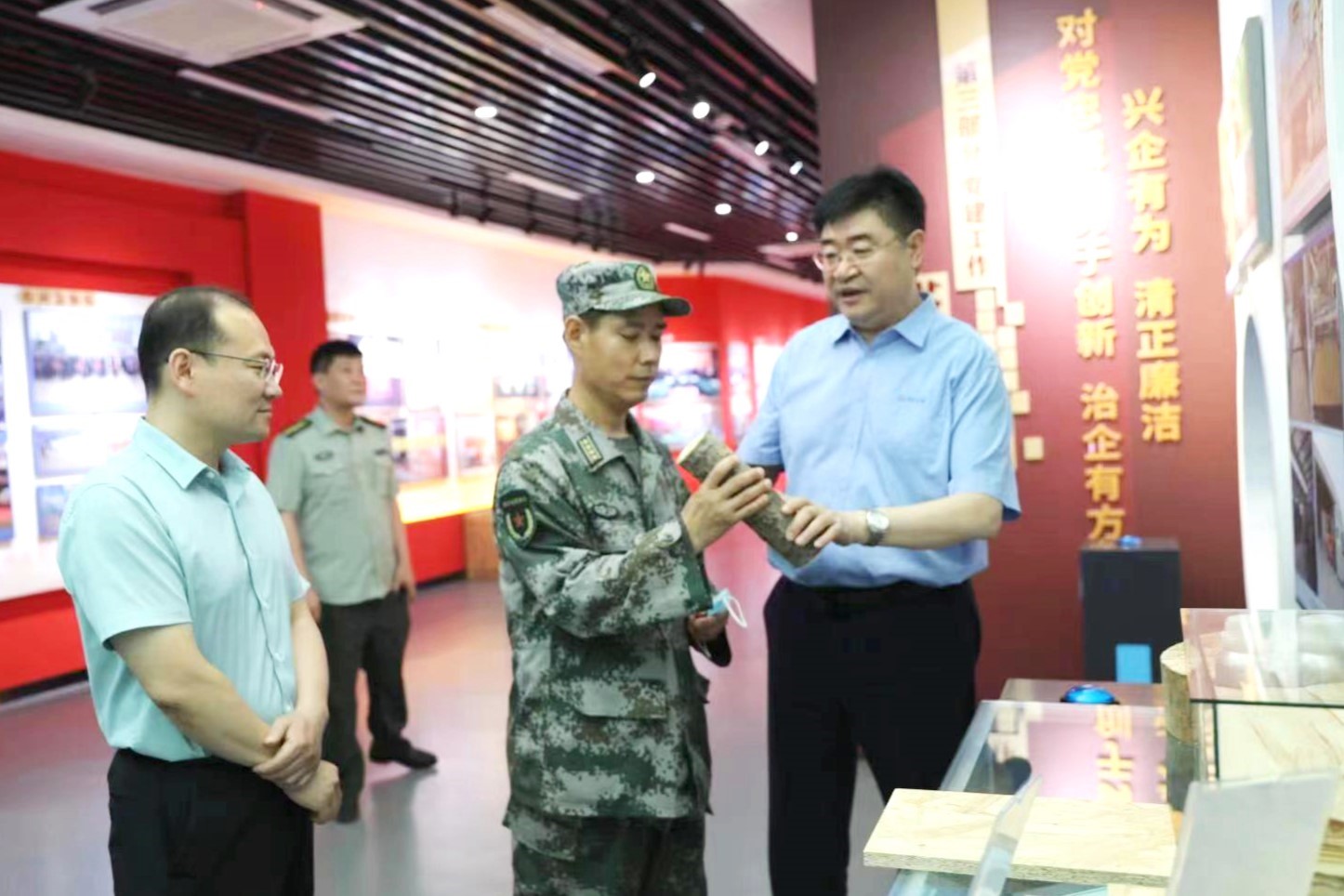 王世克一行參觀了集團(tuán)黨建綜合展廳,查看了武裝部“四室一庫(kù)”布置情況。詳細(xì)詢問了集團(tuán)發(fā)展史、武裝部建設(shè)史及現(xiàn)階段武裝、雙擁工作開展情況,對(duì)黨管武裝、組織建設(shè)、民兵整組、編兵信息、練兵備戰(zhàn)及保障措施等工作情況進(jìn)行全面檢查。