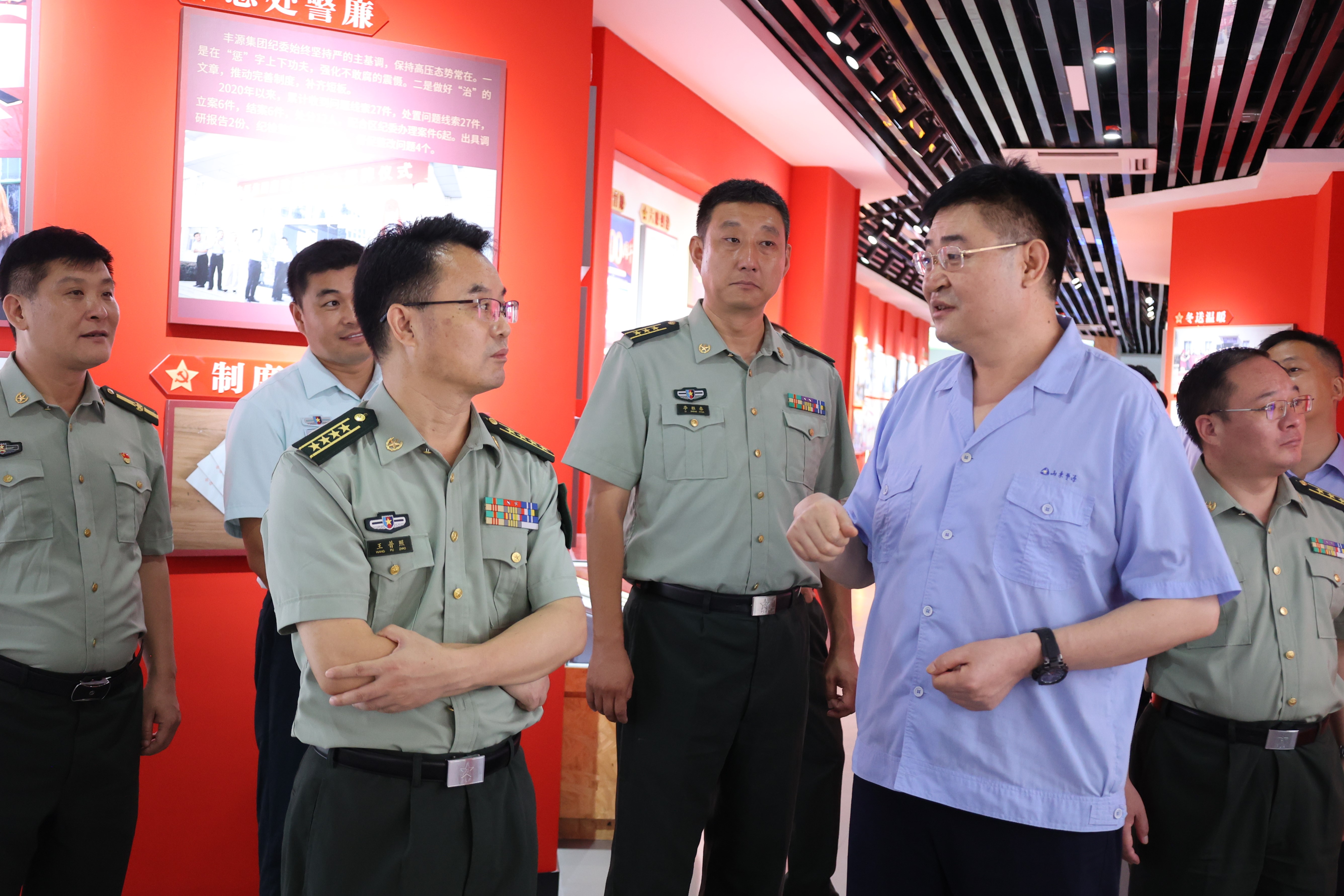8月15日,棗莊市委常委、軍分區(qū)司令員王普照帶領工作組到集團檢查指導武裝及退役軍人服務站融合辦公相關工作。嶧城區(qū)委常委、武裝部政委李曉劍,區(qū)武裝部部長李勝春,區(qū)退役軍人事務局黨組書記、局長楊蔭更,集團黨委書記、董事長孫中國,黨委委員、副總經(jīng)理、武裝部部長孫超陪同。
