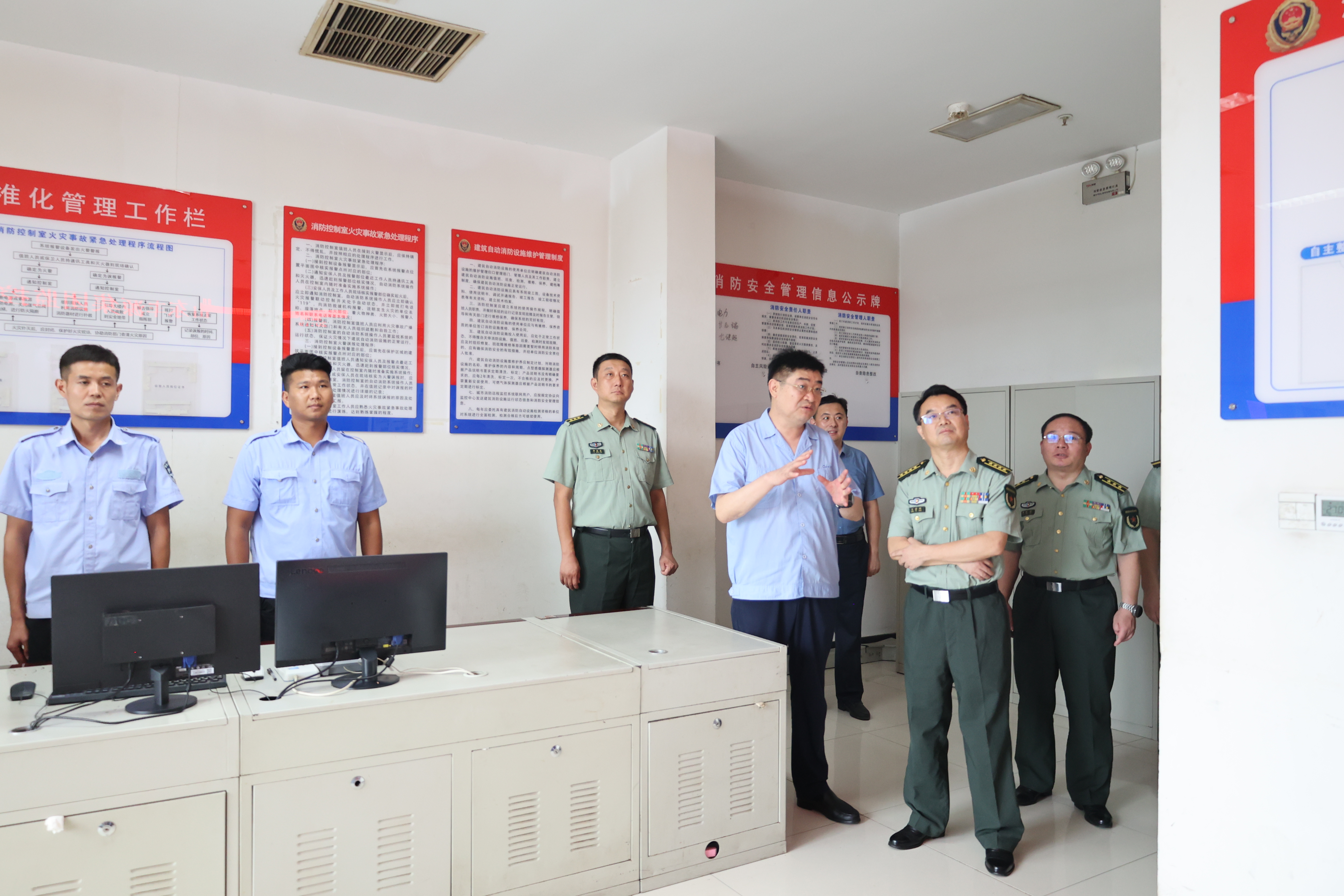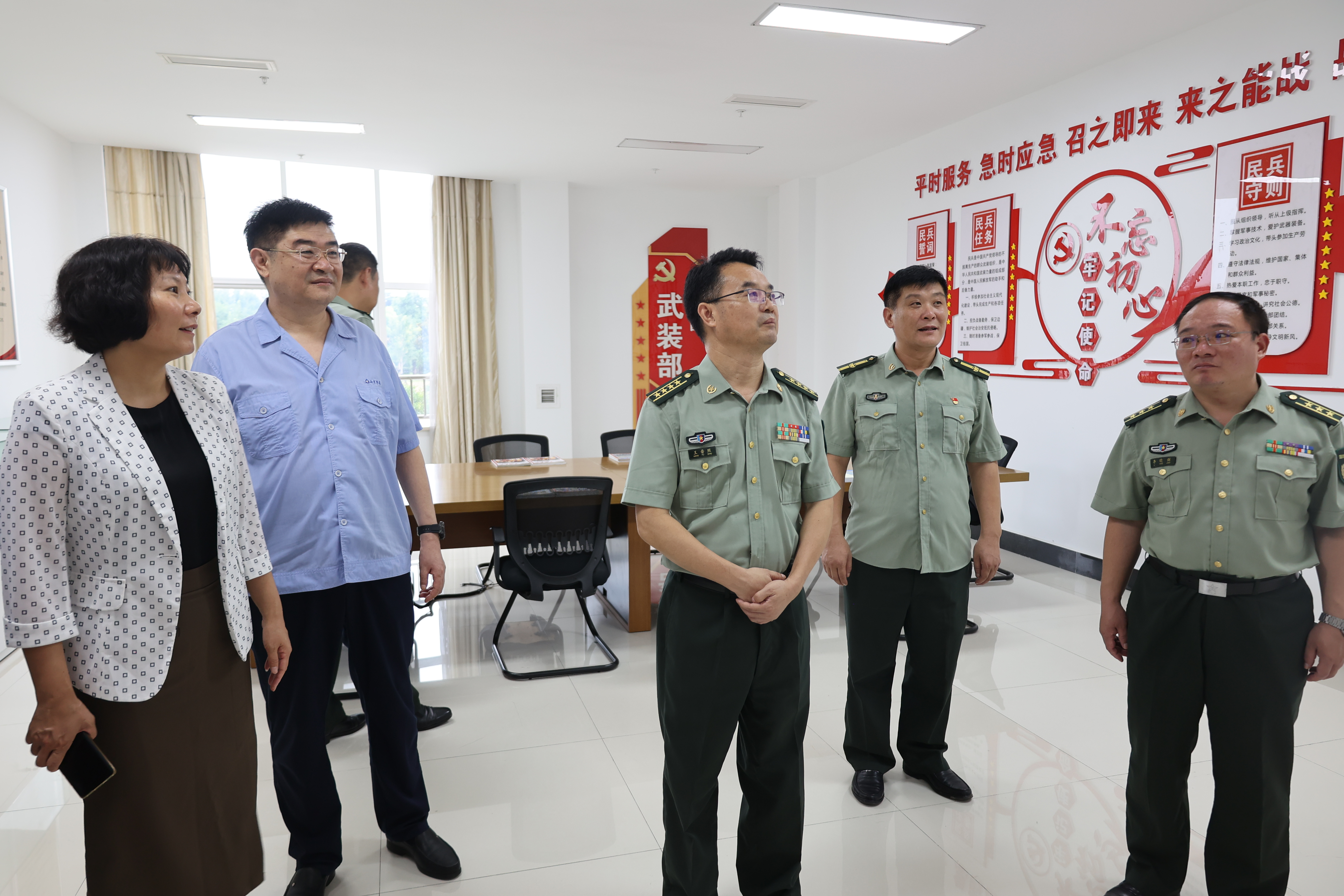 8月15日,棗莊市委常委、軍分區(qū)司令員王普照帶領工作組到集團檢查指導武裝及退役軍人服務站融合辦公相關工作。嶧城區(qū)委常委、武裝部政委李曉劍,區(qū)武裝部部長李勝春,區(qū)退役軍人事務局黨組書記、局長楊蔭更,集團黨委書記、董事長孫中國,黨委委員、副總經(jīng)理、武裝部部長孫超陪同。