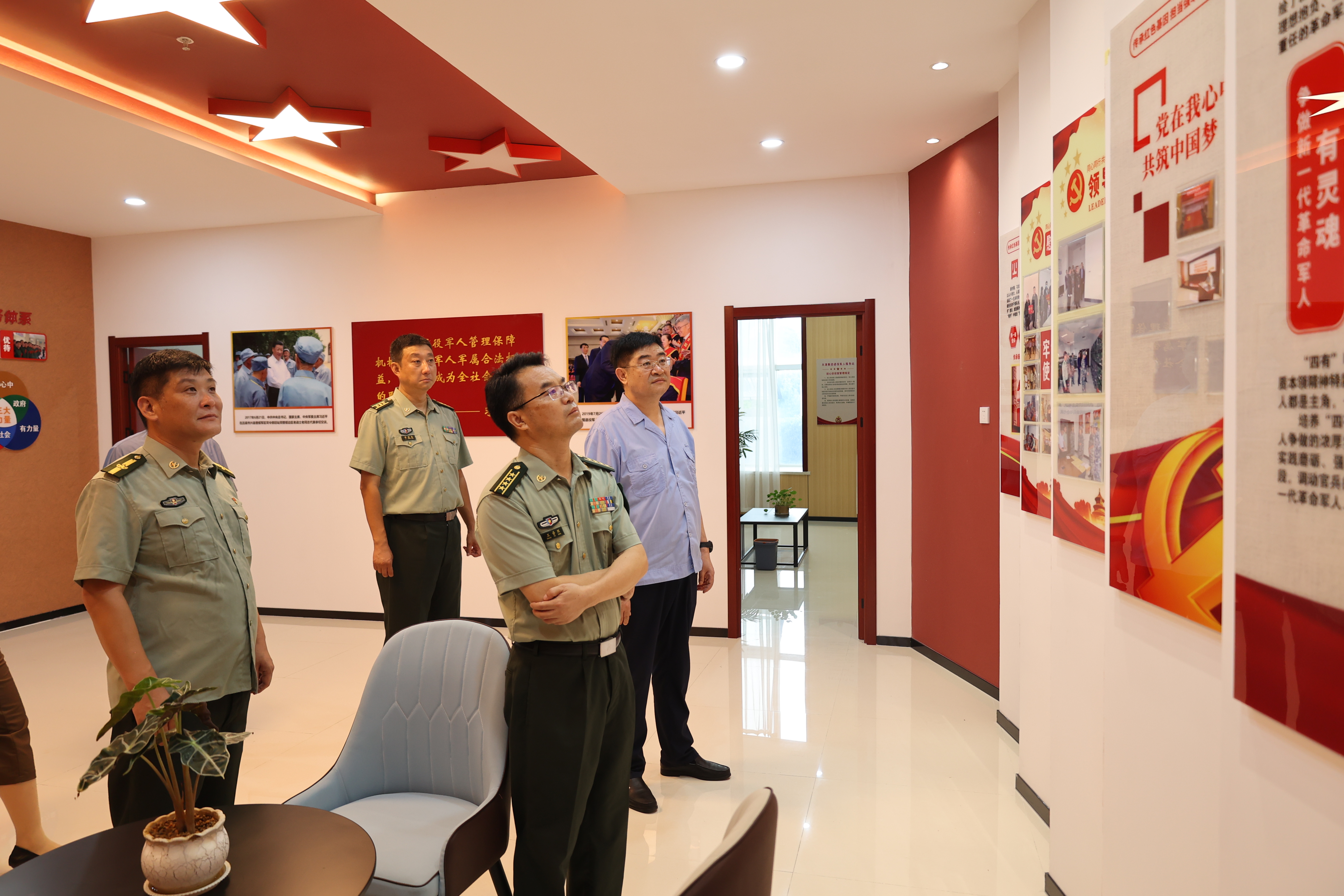 王普照一行首先查看了集團武裝部退役軍人活動中心、談心談話室、值班室等場所的硬件設施,詳細了解了集團退役軍人工作的思想建設、工作制度、工作流程等情況。參觀了集團黨建綜合展廳,了解企業(yè)黨建和高質量發(fā)展情況。